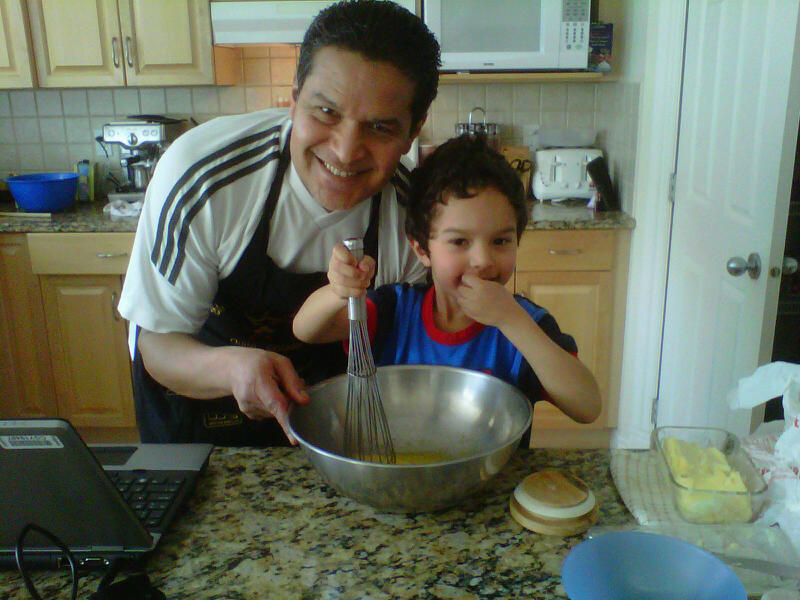 My husband and 6 year-old son also took a break today to make chocolate muffins. That’s them looking pleased as punch and having a blast! This picture reminds me of so many other times when my husband would bake or cook with our two daughters when they were little; they’re now 23 and 19 and they still call their father for cooking advice. Now, it’s my son’s turn to be initiated into an entrenched family tradition. As my son said earlier while he ate the chicken soup my husband had prepared, “This is the life!”